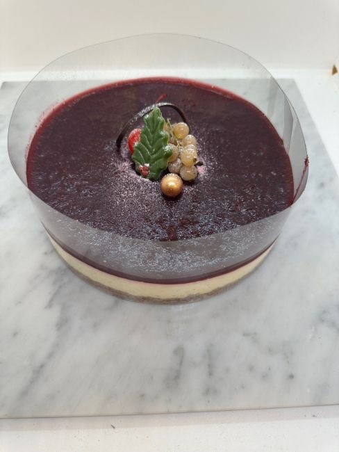 Klassisk Cheese cake. Digistive kiksebunde. Der er gelatine ( kvæg ) i.